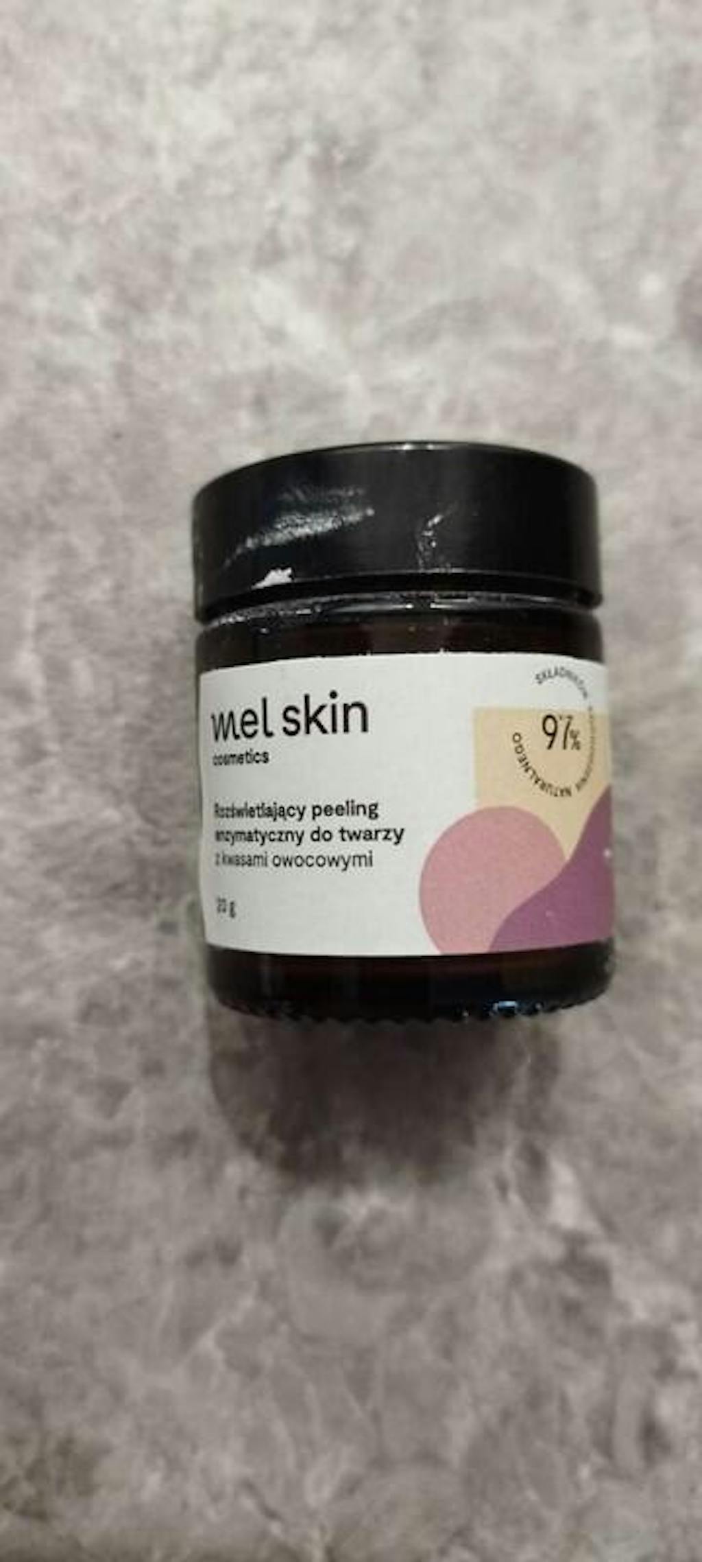 Rozjasňujúci enzymatický peeling na tvár s ovocnými kyselinami Mel Skin je starostlivo zostavené zloženie, ktoré kombinuje účinky enzýmov papaínu (z papáje) a bromelaínu (z ananásu), ako aj extraktu z granátového jablka a vitamínu C. Tieto zložky zaručujú efektívnu starostlivosť o sivú, unavenú pleť náchylnú na pigmentové škvrny. Granátové jablko je šťavnaté ovocie, ktoré dozrieva v horúcom podnebí krajín ako Turecko či Irak. Jeho extrakt obsiahnutý v bohatom zložení peelingu funguje ako prirodzený slnečný filter a stimuluje bunky k rýchlejšej regenerácii. Bromelaínové zlúčeniny odstraňujú odumretú pokožku a obnovujú jej vrstvu. Vitamín C podporuje cirkuláciu v pokožke a chráni ju pred škodlivým pôsobením voľných radikálov. Papaín rozjasňuje pleť.
